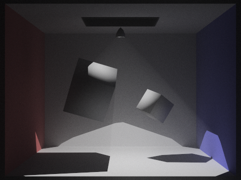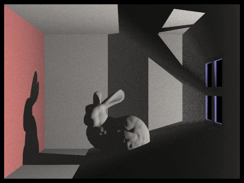 Our project is about implementing ray scattering to enable more realistic volumetric lighting in scenes. In homework 3, we implemented a pathtracer that allowed us to emulate realistic lighting by generating rays that shoot from the camera to surfaces throughout the scene, allowing them to bounce repeatedly and accumulate luminance. We built off of that assignment by, rather than shooting rays that travel until hitting an object, enabling randomized opportunities for the rays to interact with the medium they are traveling through and bounce in a different direction. With a full implementation, we can display a light fog covering our scene that creates light shafts when exposed to light sources.